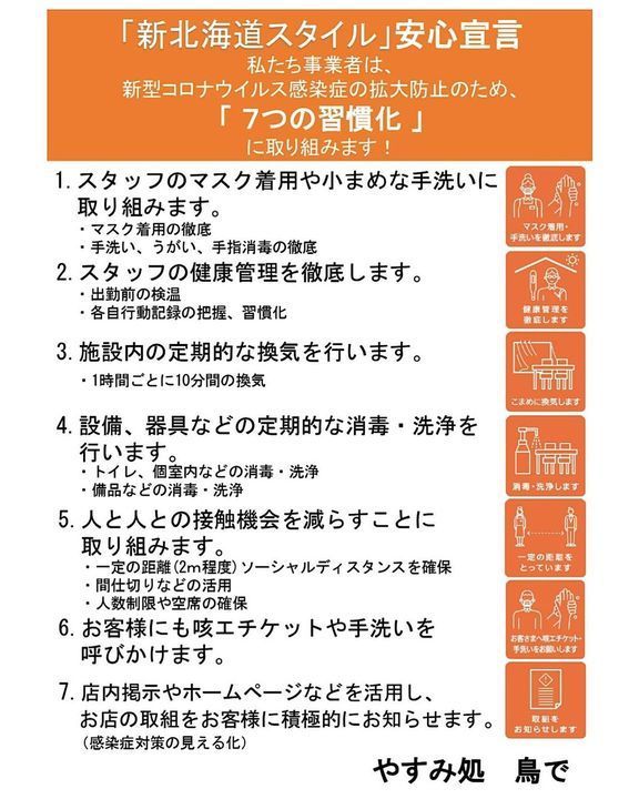 当店は『新北海道スタイル』に沿って感染症対策を行なっております。